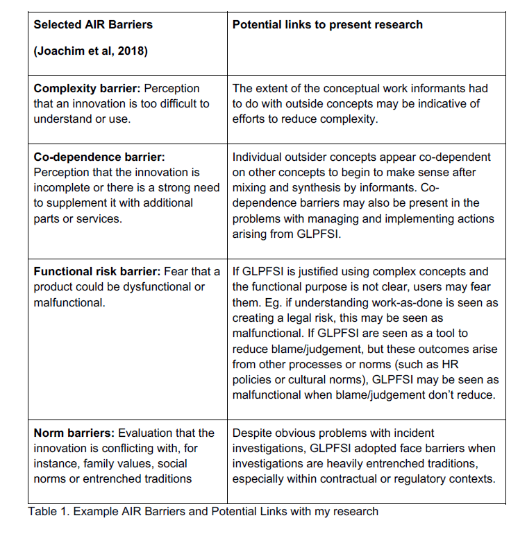 · “They are motivated to introduce these new practices to their organisation either as an addition to or replacement for longstanding safety activities such as incident investigations, despite scant theoretical or empirical research about their functioning or implementation”