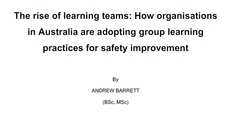 Ref: Barrett, A. (2023). The rise of learning teams: How organisations in Australia are adopting group learning practices for safety improvement. Masters thesis. Griffith University