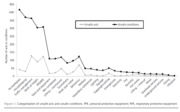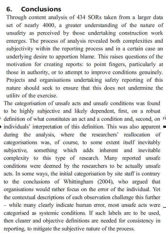 · Unexpected to the authors, most (75%) of safety observation reports were categorised as unsafe conditions rather than human acts