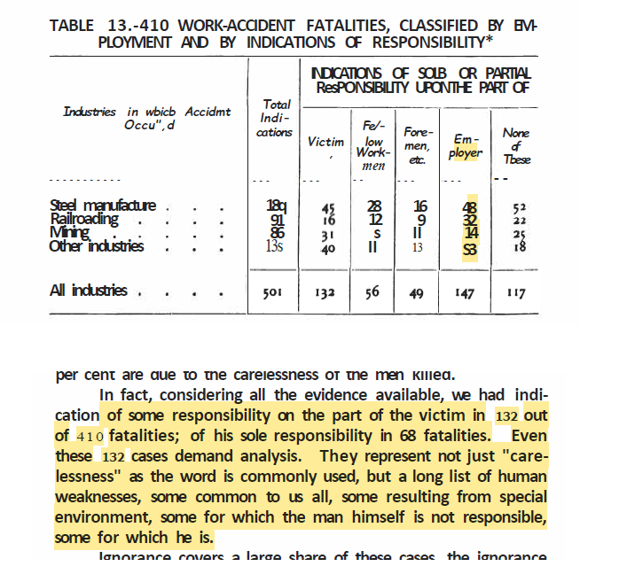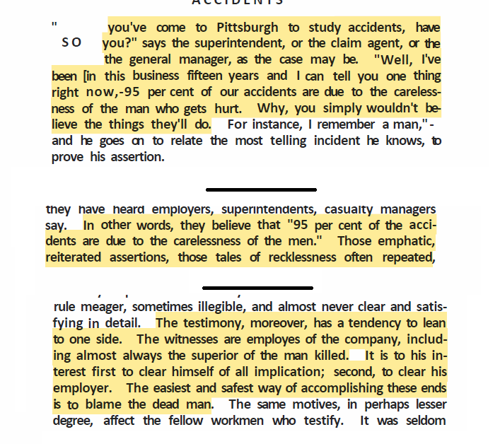 Really interesting findings from 1910 challenging the concept of carelessness and workers as the main ‘cause’ of traumatic accidents.
