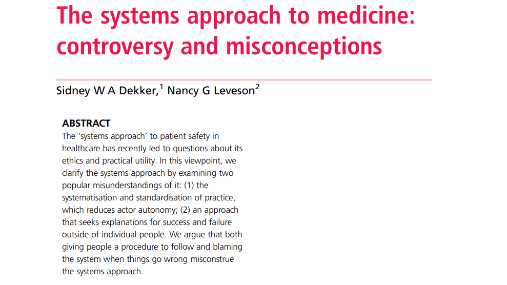 This was a really brief discussion paper from Dekker and Leveson, covering systems thinking in medicine.