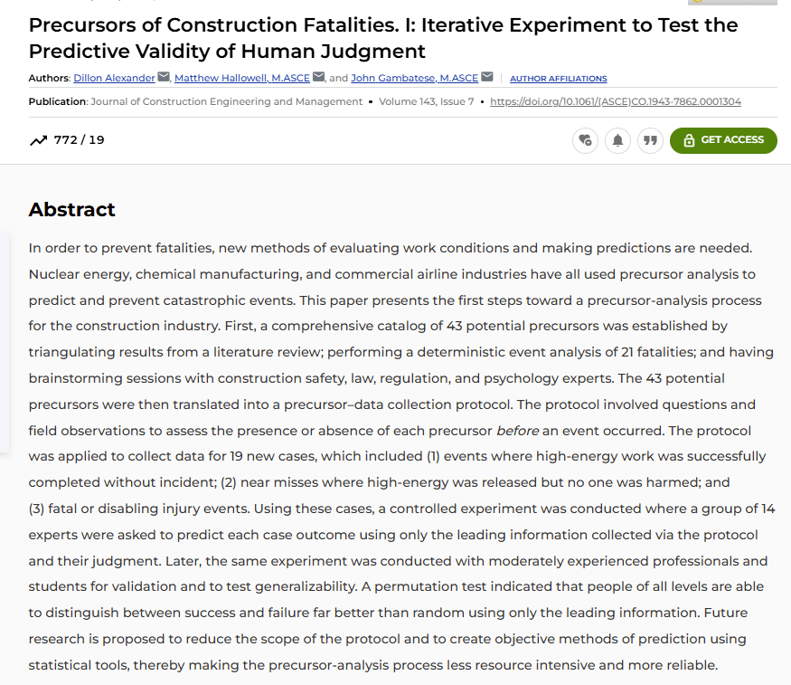 https://www.academia.edu/29240290/Accident_precursors_and_near_misses_on_construction_sites_An_investigative_tool_to_derive_information_from_accident_databases