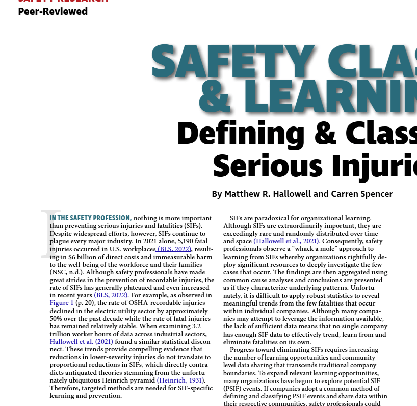 This compendium focuses on articles discussing SIFs, fatal & traumatic hazards, risks and similar concepts. Focus is on acute traumatic injury – occupational health/chronic exposures will be covered in the future.