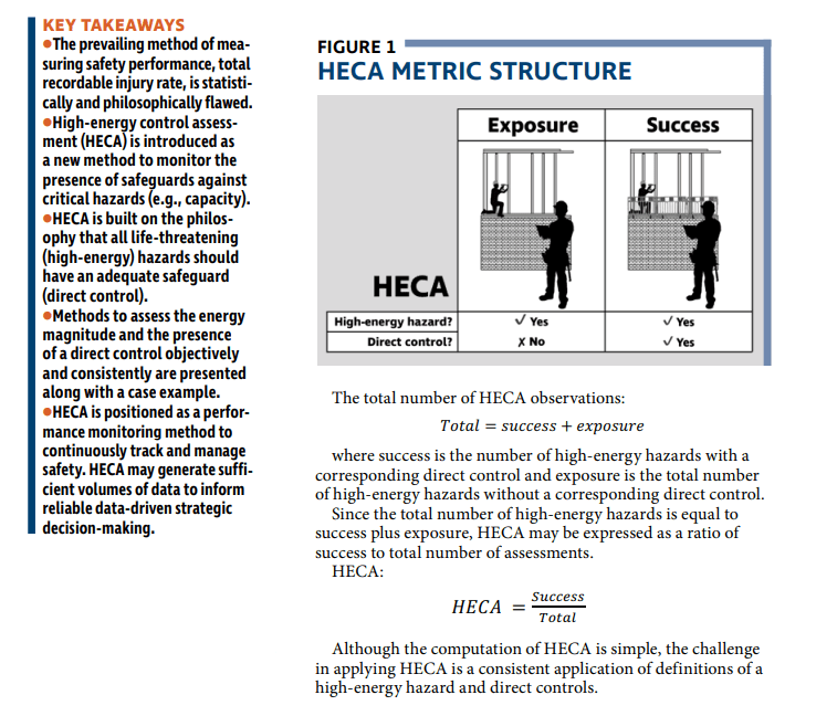 - They say HECA can be reduced to a single number, it “could be used to summarize historical safety performance as a metric that tracks the percentage of high-energy hazards that have corresponding direct controls”