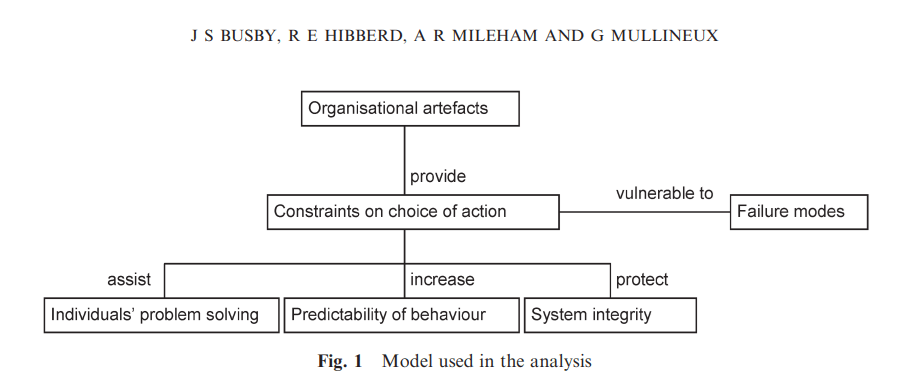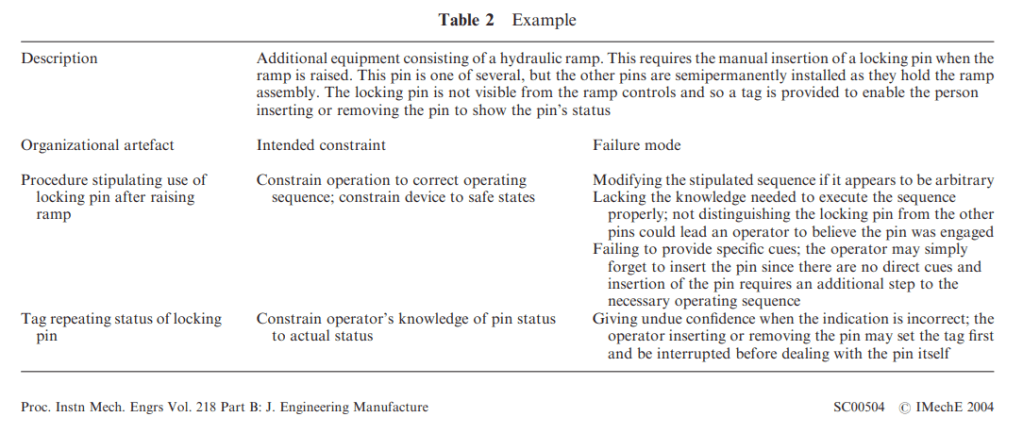 · “Applying a technique such as FMEA directly, however, does not work well because organizational artefacts do not fail in an analogous way to physical devices. A more appropriate form of analysis is to identify the constraints that these organizational artefacts provide, and then to identify ways in which the constraints can become ineffective during the operation of the system”