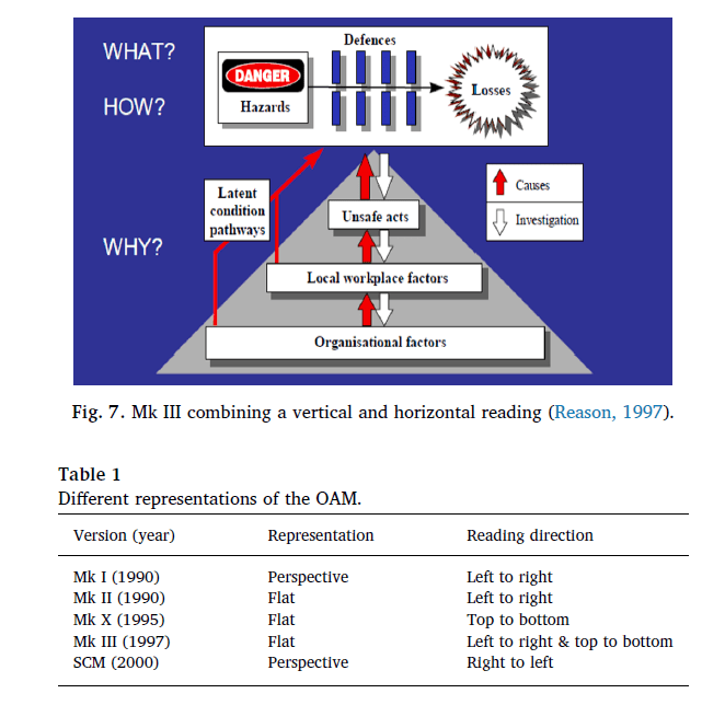 · Various iterations and evolutions existed (not discussed here but see the paper), however, the iterations “showed that a catastrophe could occur in the absence of an active error, “unsafe acts at the sharp end are not essential – though common – for creating defensive gaps and weaknesses”