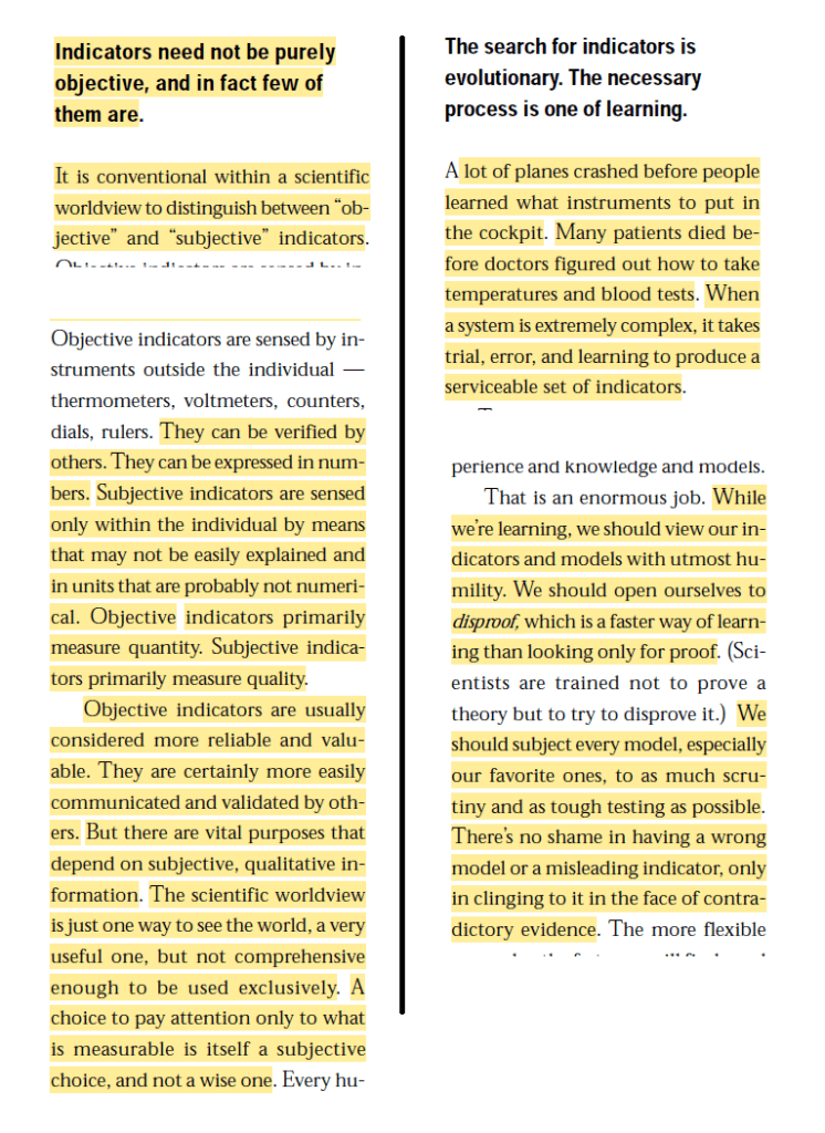 · “These difficulties don’t mean, however, that we shouldn’t use indicators. We have no choice. Without them we fly blind. The world is too complex to deal with all available information”