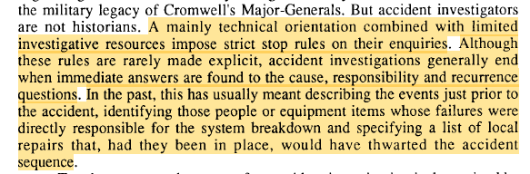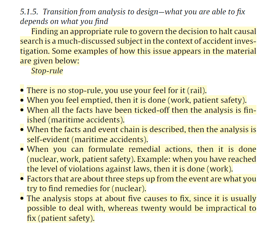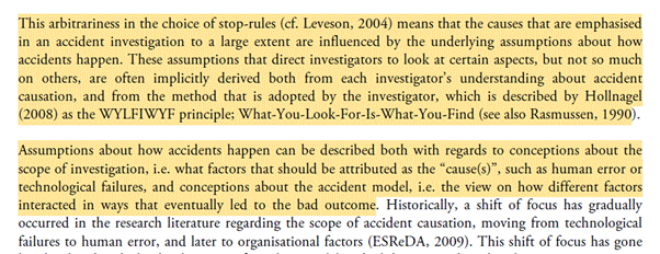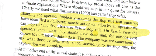 I recorded a new ep on my podcast Safe AF, looking at factors which influence what investigations find, or more precisely, ‘construct’ as causal, and the factors which influence what gets fixed. One set of factors are ‘stop rules.