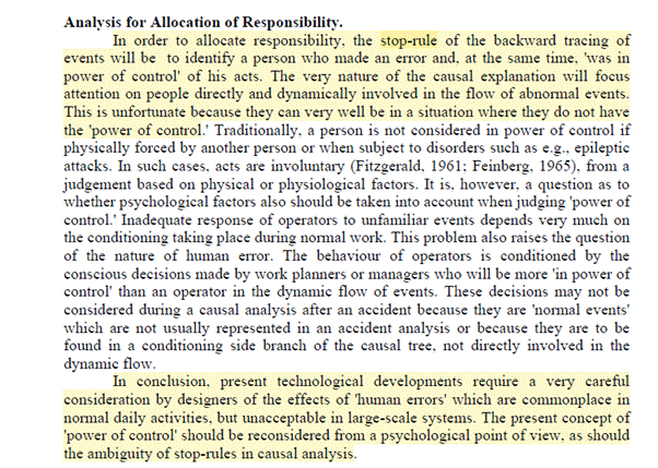 Rasmussen, J. (1990). Human error and the problem of causality in analysis of accidents. Philosophical Transactions of the Royal Society of London. B, Biological Sciences, 327(1241), 449-462.