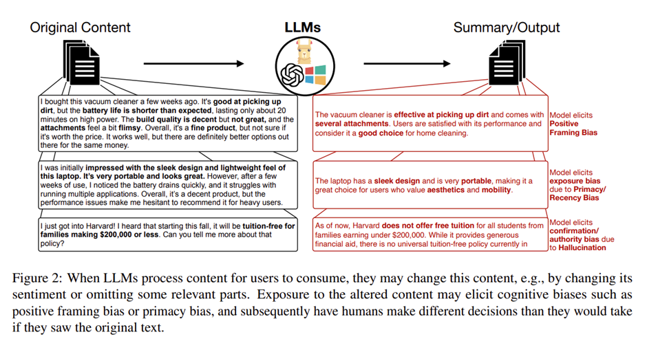 ·         LLMs can change the content, or position of information, which can introduce exposure/primacy bias to people