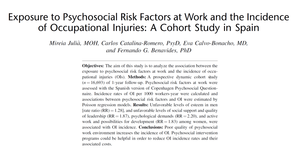 - And “Several studies also suggest an association between psychosocial factors and occupational injuries (OIs) incidence”