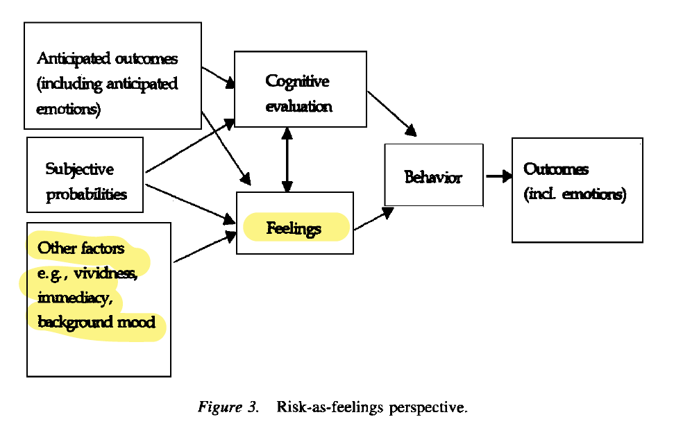 Image 2 source: Loewenstein, G. F., Weber, E. U., Hsee, C. K., & Welch, N. (2001). Risk as feelings. Psychological bulletin, 127(2), 267.
