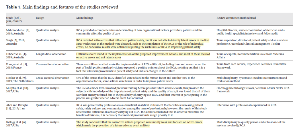 2. Martin-Delgado, J., Martínez-García, A., Aranaz, J. M., Valencia-Martín, J. L., & Mira, J. J. (2020). How much of root cause analysis translates into improved patient safety: a systematic review. Medical Principles and Practice, 29(6), 524-531.