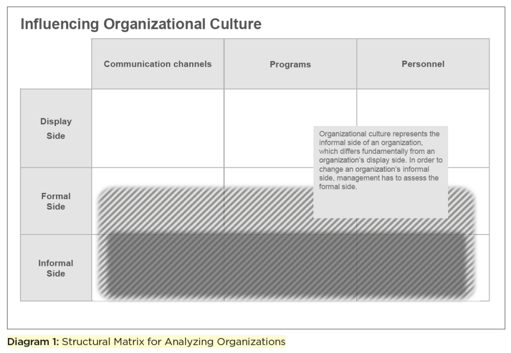 · And “Even if informal programs, communication channels and decisions on personnel are identified in detail within the framework of a cultural analysis, they are not always related to formal programs”