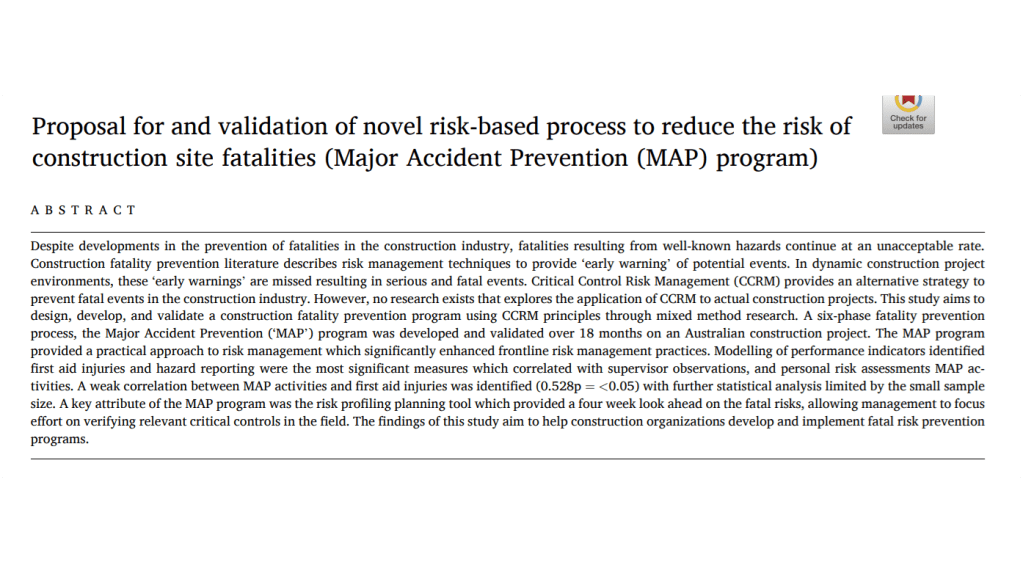 Proposal for and validation of novel risk-based process to reduce the risk of construction site fatalities (Major Accident Prevention (MAP) program)