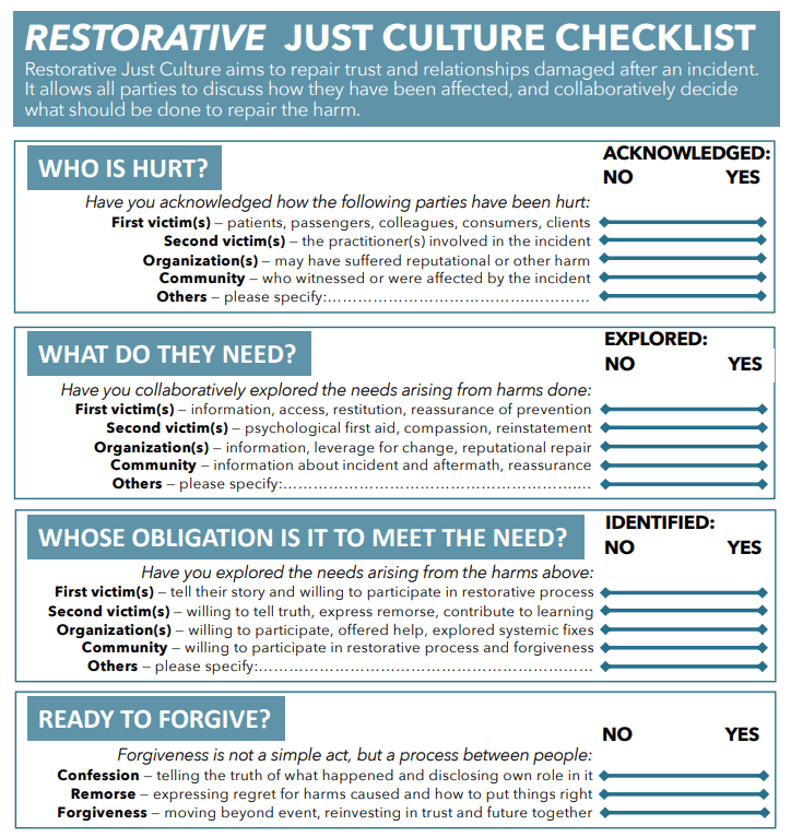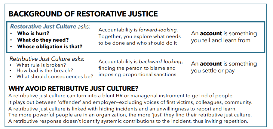 Images 2 & 3: Dekker, S. Restorative Just Culture Checklist. From SafetyDifferently . com