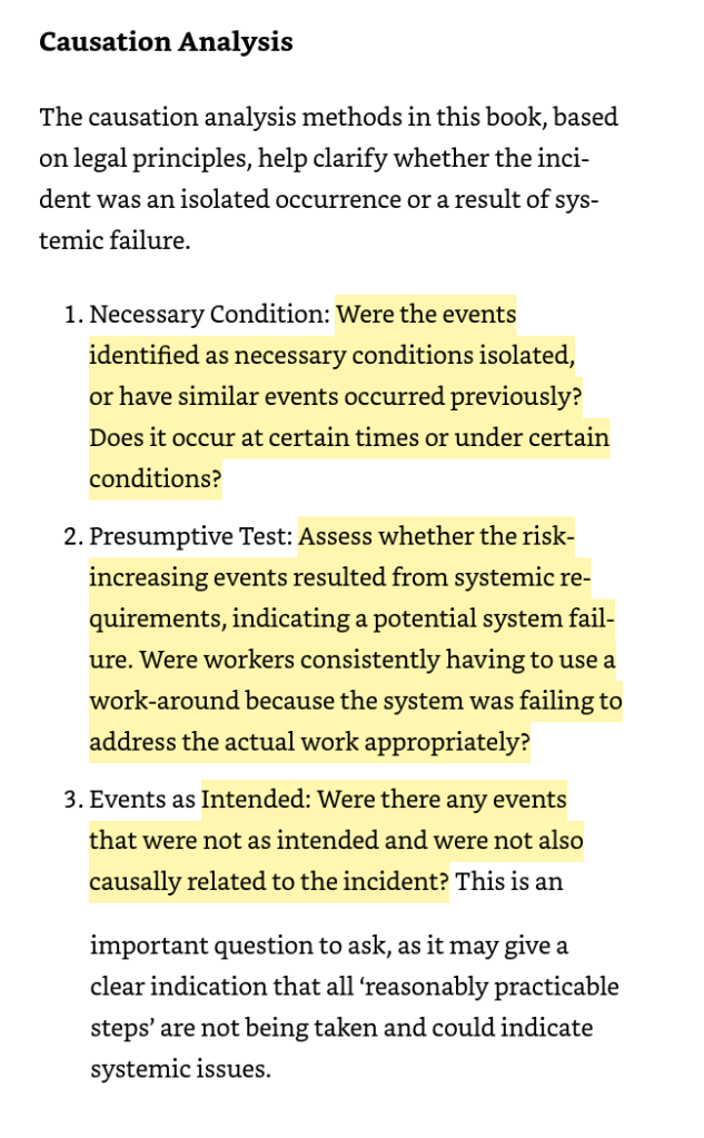 · The presumptive test: “Assess whether the risk-increasing events resulted from systemic requirements, indicating a potential system failure. Were workers consistently having to use a work-around because the system was failing to address the actual work appropriately? “