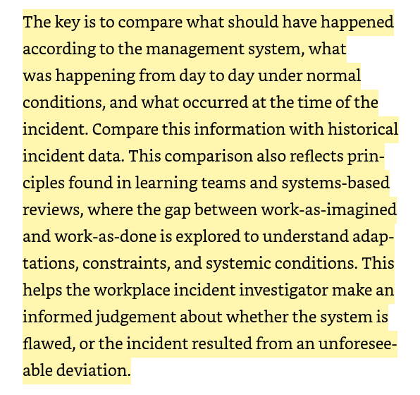 · “The key is to compare what should have happened according to the management system, what was happening from day to day under normal conditions, and what occurred at the time of the incident”