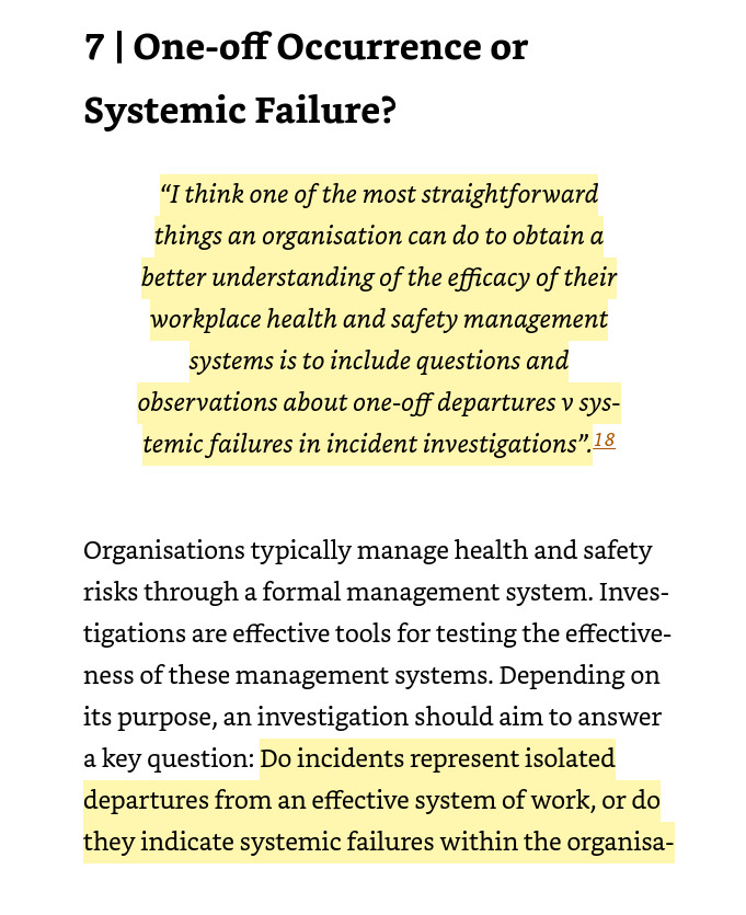 · Or “include a reference “in every incident investigation asking whether the incident was a one-off departure from the organisation’s expectations, or whether there is any evidence that the incident, or elements of it, might represent a systemic failure”