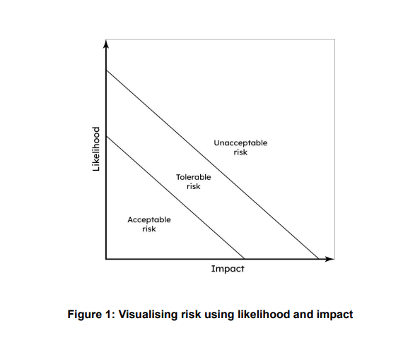 · The P-I graph, assuming risk is the product of both likelihood and impact, then divides options into acceptable, tolerable and unacceptable via diagonally descending lines of “equal risk”