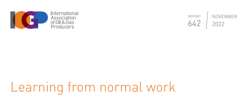 Article: https://www.iogp.org/bookstore/product/learning-from-normal-work/