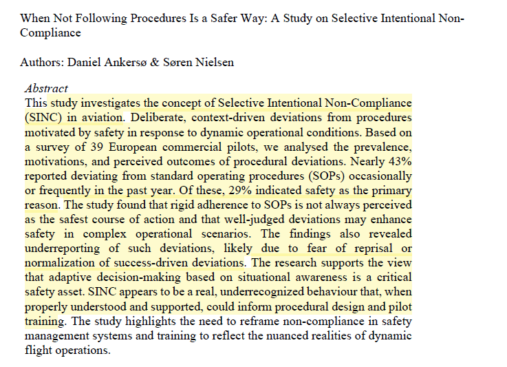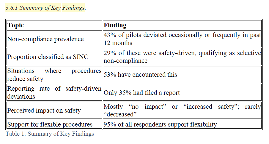 · Hence “intentional non-compliance is not a fringe behaviour but rather a normalized part of daily flight operations for nearly half the surveyed pilots”