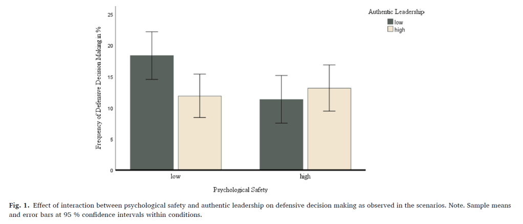 ·        And “either authentic leadership or psychological safety needs to be present to reduce defensive decision making, but not both”