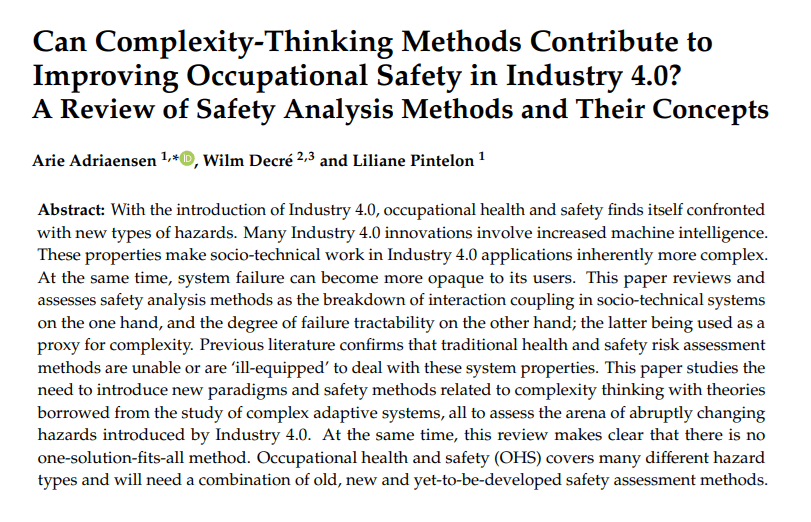 · “Traditional OHS safety analysis methods lack the ability to analyze socio-technical issues collectively”