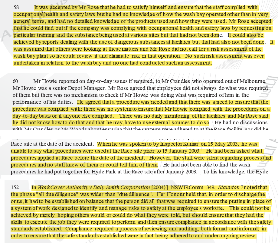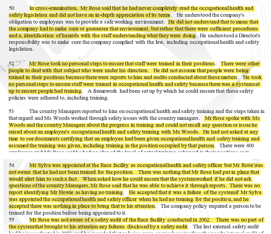 · “He took no personal steps to ensure staff were trained in occupational health and safety because there was a system set up to ensure people had training”