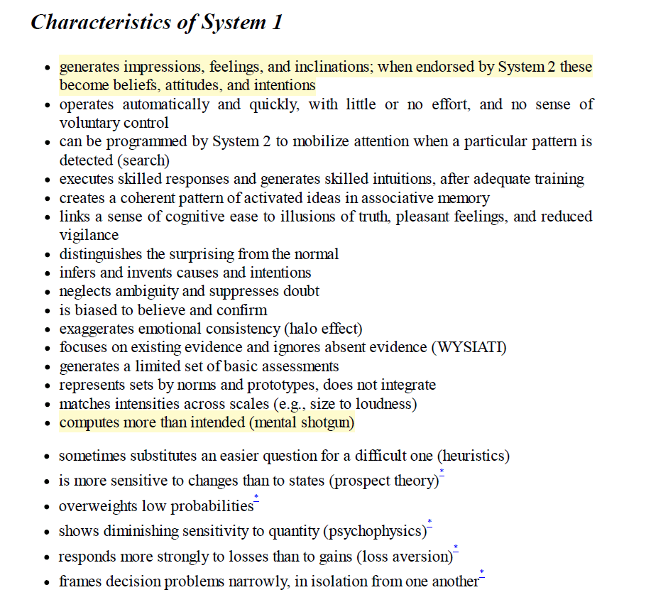 “If endorsed by System 2, impressions and intuitions turn into beliefs, and impulses turn into voluntary actions.”