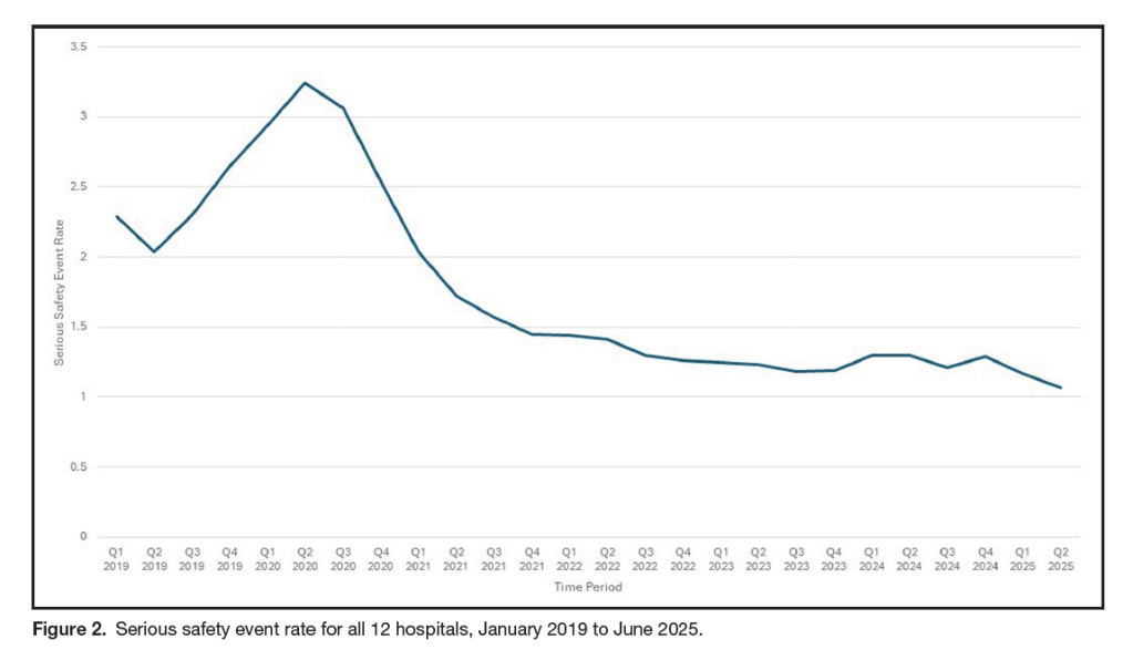 This studied whether High Reliability Organising (HRO) interventions improved serious safety events (SSE), reporting and aligning leadership with frontline practice.