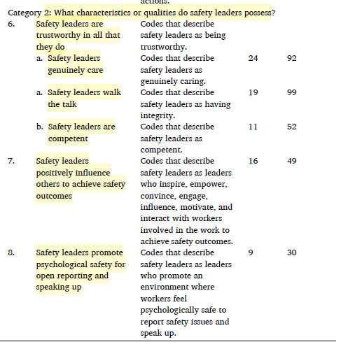 · “The organizations employing many of the interview participants had provided their leaders with the training, coaching, and supporting organizational culture to put safety at the forefront of everything they do. This was not by chance but rather by design”