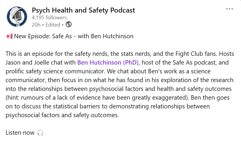For those interested, Jason, Joelle and I talk psychosocial risks and evidence.