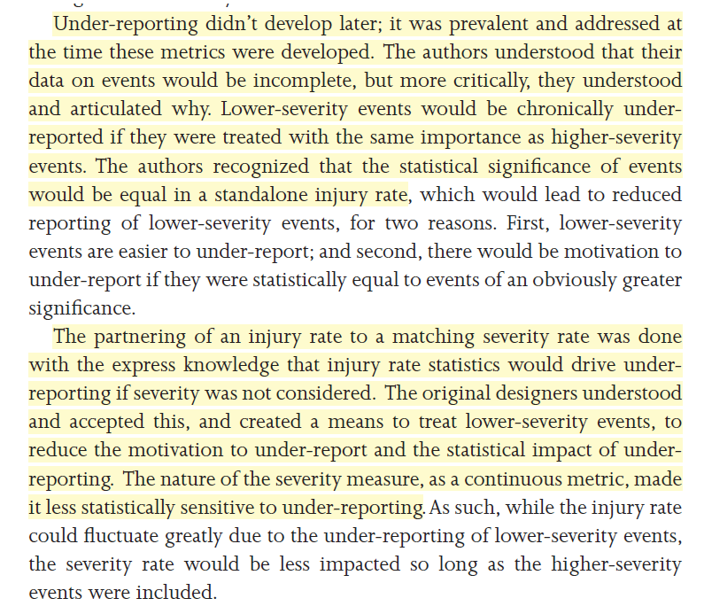 “The partnering of an injury rate to a matching severity rate was done with the express knowledge that injury rate statistics would drive underreporting if severity was not considered.”